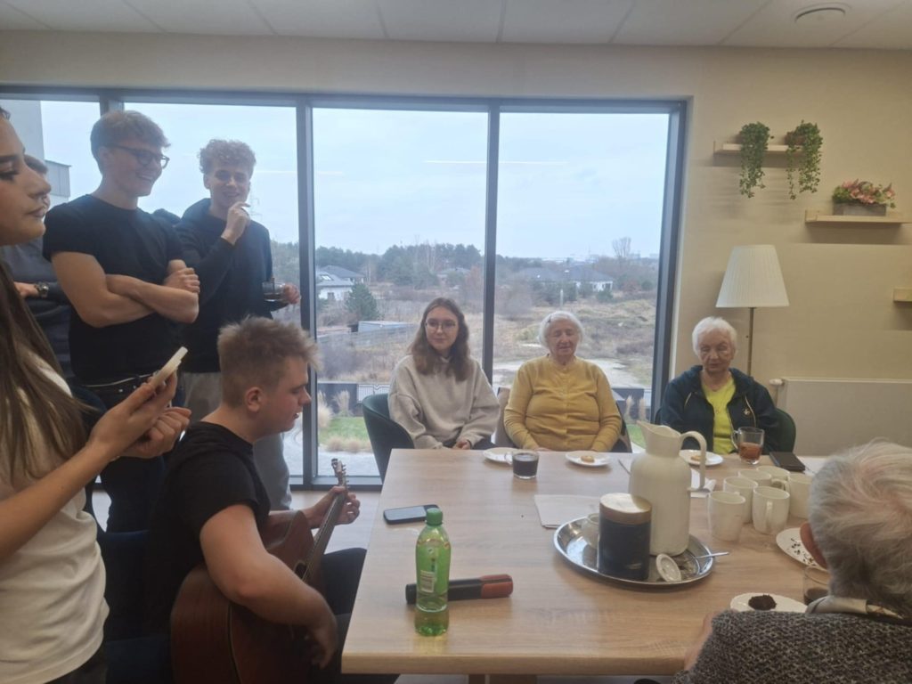 Podczas spotkania wolontariusze prowadzili indywidualne rozmowy z mieszkańcami rezydencji, zorganizowali zajęcia integracyjne, które spotkały się z dużym zainteresowaniem, a także zaprezentowali program artystyczny. Atmosfera była niezwykle serdeczna i pełna życzliwości. Seniorzy chętnie dzielili się swoimi wspomnieniami i doświadczeniami życiowymi, co sprzyjało budowaniu relacji oraz wzajemnego zrozumienia.
