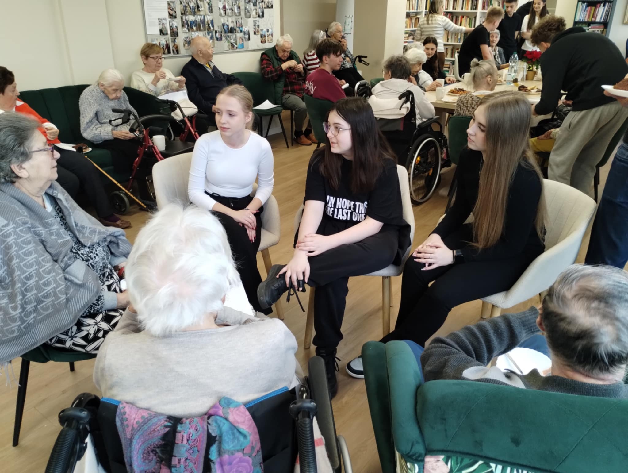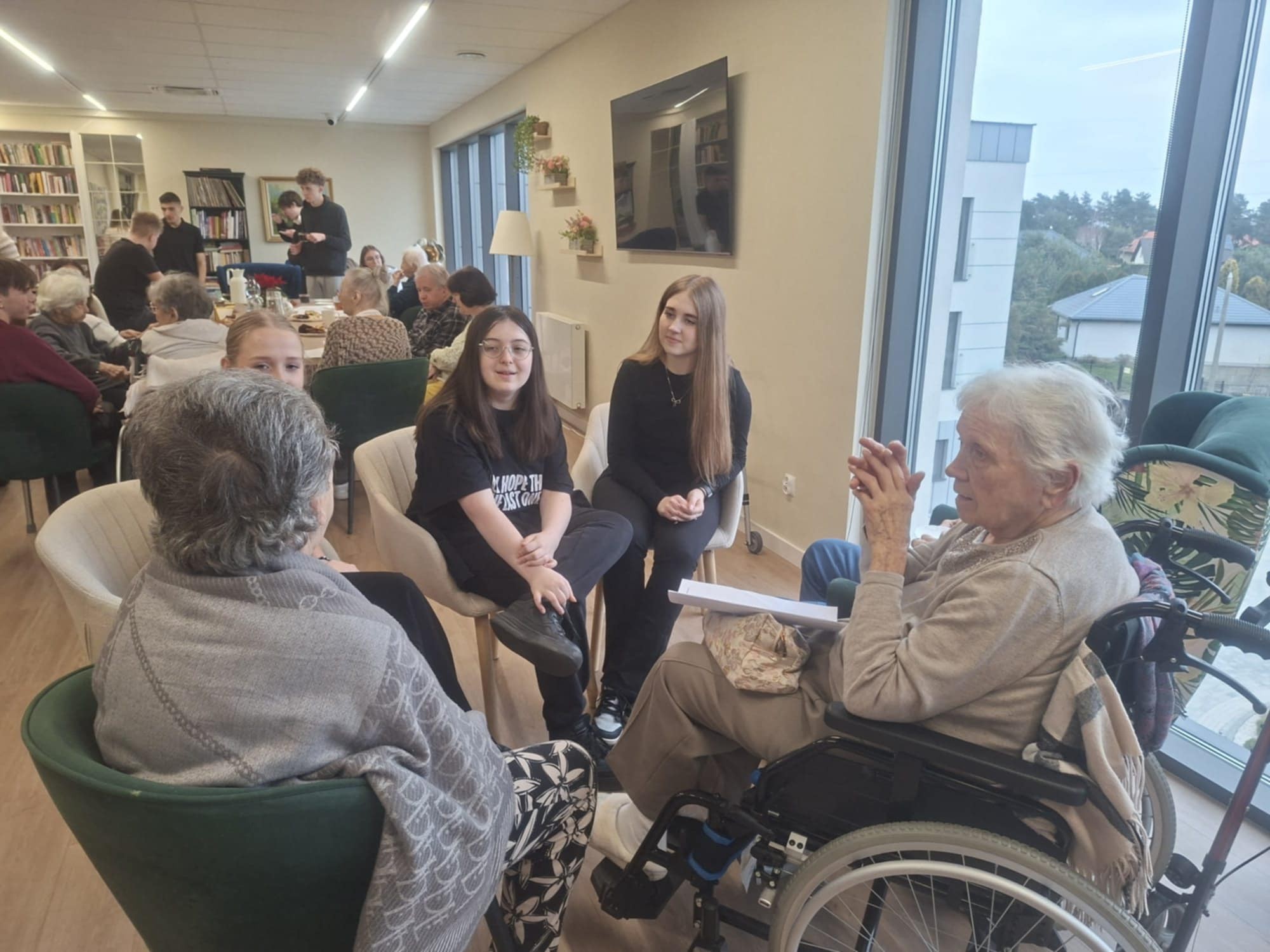 Podczas spotkania wolontariusze prowadzili indywidualne rozmowy z mieszkańcami rezydencji, zorganizowali zajęcia integracyjne, które spotkały się z dużym zainteresowaniem, a także zaprezentowali program artystyczny. Atmosfera była niezwykle serdeczna i pełna życzliwości. Seniorzy chętnie dzielili się swoimi wspomnieniami i doświadczeniami życiowymi, co sprzyjało budowaniu relacji oraz wzajemnego zrozumienia.